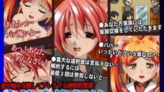 妻や娘を他人家族と交換エッチ他人に寝取られている妻や娘の様子も覗き可能なNTR▼△妻や娘を交換してプレイする秘密倶楽部▼△最低3回の家族交換を行うまで退会不可能!あと何回、我慢すれば平和に暮らせるの?他人家族と交換交渉しさまざまな理由のある他人妻や娘とプレイ!▼△他人に寝取られている妻や娘が心配!▼△寝取られ中は何も手出しできないが、せめて見守るだけでも…●家族寝取られ部屋へ訪問可能フィニッシュタイミングは自由自在!ボタン1つで交換家族とのエッチプレイを終了できる時間が余ったら家族の元へ…悪戯されている娘の部屋に行くか!?犯●れている妻の部屋に行くか!?もちろん交換した他人妻や娘とたっぷりプレイを楽しむことも可能!▼△NTRやり込みレベル▼△射精ボタンを一度も押すことがなく交換プレイを最後まで行うとレベルがアップ!レベルアップするとより濃厚なプレイ可能!・レベルはゲームエンド時にセーブすることで引き継がれます・同じ人とのプレイでも内容が変化します▼△この作品はRPGツクールMVで作られています▼△