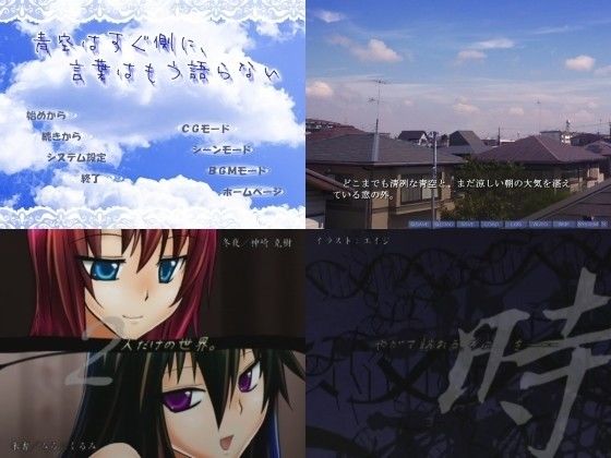 青空はすぐ側に、言葉はもう語らない GAME X Facebook はてブ Pocket LINE コピー 2025.10.30<PR>発売日2011-09-23 09:59:00ジャンル制服 フェラ 監禁 音声付き デモ・体験版あり アドベンチャー 男性向け メーカー男の娘ソフト 品番d_041293価格¥770 ●男の娘(オトコノコ)のHゲーム 男の娘と少女の物語。 限られた最期の時の中で二人は語り合い、肌を重ね合う。 シリアスな純愛ストーリー。 OPムービーあり。 ●物語 空はどこまでも青かった。 だが窓は閉められており、風を感じることはできない。 非常食も水ももうすぐ底を突くだろう。 2人だけの世界。 冬夜と朱香はワンルームの部屋で、ただ静かに膝を抱えて待っていた。 やがて訪れる、その時を―― —— ≪奴らは‘生命の設計図’に野放図な落書きを撒き散らす。 神の築いた‘螺旋状の神秘’に暴虐の限りを尽くし、子々孫々にまで呪い続ける執念深さだ。生命が受け継がれていくシステムを破壊するのだ。≫ ≪空から舞い降りる雨には――色がついていたのだ。 透明であるはずの水滴。しかしどういうわけかうっすらと黒みを帯びている。 地面やガラス窓に当たれば弾け散り、その色彩は途端に薄まるように消える。だが、その雨は確かに闇の色を湛えながら落ちてきていた。 まるで無機質に、ただ地平線のようにそこにある現実を受け流すには、人事のように振る舞うしかない。≫ ≪冬夜は思い出す。新約聖書、最後の預言書を。 様々な災いが降りかかり、多くの人間が苦しむ姿が描かれた黙示録だ。 だとすれば今は最終戦争の最中なのか? それじゃあ、ここさえ乗り切れば救世主がやってきて幸せの千年王国を築いてくれるのか?≫ —— ●充実のシステム設定! CGモードやHシーンモードは勿論、メッセージ速度設定、各種サウンド設定、自動読み進み、スキップ、クイックセーブ・ロード、など便利なシステムを完備! ●クリエイター 制作責任・原作・ディレクション: 栖 深雪 シナリオ: 根無し草 イラスト: エイジ キャラクターボイス: 鵜乃井 冬夜/神崎 克樹 文野 朱香/みる☆くるみ ▼動作環境 ・OS Windows XP/Vista/7 ・CPU 1GHz以上(1.5GHz以上推奨) ・メモリ 256MB以上(512MB以上推奨) ・グラフィック 画面解像度800×600以上 ・HDD 600MB以上の空き詳細はこちら青空はすぐ側に、言葉はもう語らない 1枚目青空はすぐ側に、言葉はもう語らない 2枚目青空はすぐ側に、言葉はもう語らない 3枚目詳細はこちら