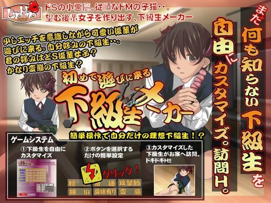 初めて部屋に遊びに来る後輩女子の人格を自由にカスタマイズ。 エディットした下級生がお家に遊びに来る! ツンデレプレイから変態スカトロプレイまでドキドキな時間。 カスタマイズした理想の下級生と遊ぼう! 少しエッチを意識しながら可愛い後輩が遊びに来る。 君の好みはツンデレ後輩女子?かなり変態の下級生? 【ゲーム説明】 簡単操作で自分だけの理想的な下級生を作り出します。 ツンデレタイプの小悪魔から、従順なドM変態子猫まで…。 <まずは下級生の人格を設定> 設定項目は基本性格からマニアックな性癖まで設定可能! <いよいよ下級生がお家へ訪問> 理想の下級生がお家に遊びに来ます。 この日の為にいろいろな大人の玩具をそろえました!! たっぷり悪戯したり、変態的にいじめたりと…