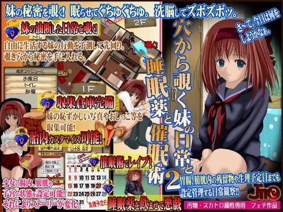 穴から覗く妹の日常と睡眠薬と催●術2 GAME X Facebook はてブ Pocket LINE コピー 2025.10.18<PR>発売日2014-10-24 10:00:00ジャンル羞恥 スカトロ フェラ アドベンチャー 男性向け メーカーJIRO 品番d_073934価格¥1210 義妹の体調を自由にカスタマイズ! 食事の内容や水分摂取量、生理予定日を設定。 毎日変化する日常を覗き観察! さらに睡眠薬で眠らせて悪戯! 禁断の洗脳で変態プレイ! ≪ストーリー≫ 堀木 美衣亜(ほりき みいあ) 腹違いの母から生まれた俺の義妹だ。 明日からうれしい事に義妹と俺の二人だけの生活が始まる。 そこで家を改造し秘密の覗き穴を開け、トイレには特別な仕掛けを用意した。 彼女の日常を覗くことはもちろんだが、彼女が使用したトイレからの下水は地下秘密の部屋に流れ込む仕組みにした。 さらに最強の睡眠薬と洗脳催●術を修得し準備万端で義妹の到着を待っていた。 ■行動選択型シミュレーションアドベンチャーGAME ■■■■■■ 自由に生活する妹の行動を予測し覗き! 油断した義妹の日常を暴く! ■胎内カスタマイズ可能! ■■■■■■ 内蔵、膀胱内の残留物や生理予定日までも設定管理! 体調が変化しさまざまな秘密を見ることが出来る。 覗きスケジュールもカレンダーで自由に選べ、毎日変化する日常を観察! 体調によって変化するCGやストーリー!! ■覗きに飽きたら直接悪戯! ■■■■■■ 最強睡眠薬で眠らせての悪戯や、何をしても許される禁断の洗脳で直接襲う!! 眠らせてぐちゅぐちゅ。洗脳してズボズボッ。 属性を刺激する変態プレイ。 ■収集倉庫完備 ■■■■■■ スカトロ属性全開の秘密の小部屋。 妹の恥ずかしい写真やおしっこ等を収集可能! 果たして彼女の秘密をコンプリートする事が出来るか!? ■臨場感あふれるボイス収録 ■■■■■■ 覗きシーンは臨場感あふれる実際の生活音を収録。 女性声優の部屋でそのまま秘密収録。 トイレ、お風呂…そしてオナニーも? ■当作品は「穴から覗く妹の日常と睡眠薬と催●術」のシステムを踏襲し25枚以上の新規書き下ろしCGで再編集した作品です。詳細はこちら穴から覗く妹の日常と睡眠薬と催●術2 1枚目穴から覗く妹の日常と睡眠薬と催●術2 2枚目詳細はこちら