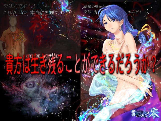 ■■■■■■■■■ストーリー■■■■■■■■■ 主人公「山寺 都」は 普通に暮らす●●●●生だが 「4日後に殺す」という謎の文字が 部屋に浮かび上がった日を境に 次々に不可解な現象に襲われる。 そして事件は 周りの人間を巻き込みつつ進行していく。 あなたは真実にたどり着き 「死の呪い」から生還する事が出来るだろうか? ■■■■■■■■■■進化■■■■■■■■■■■ 以前に「書いてある 改」をプレイされた方も 大幅に進化した「零バージョン」をお楽しみください! 進化1 製作ツールを完全に変更することにより システム面で飛躍的に進化しました! 進化2 画面サイズを640×480から 800×600に進化させました! 進化3 キャラクターボイスにより ゲームの臨場感が劇的に進化! ※本編を購入される前に、体験版で動作確認されることを オススメいたします。