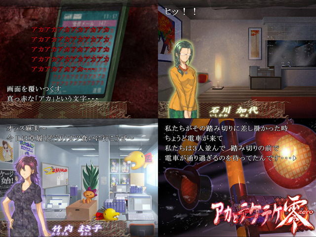 アカとテケテケ零 GAME X Facebook はてブ Pocket LINE コピー 2025.10.03<PR>発売日2019-03-03 10:00:00シリーズアカとテケテケ ジャンルホラー 全年齢向け 制服 アドベンチャー サスペンス オカルト 男性向け メーカー土塊 品番d_150097価格¥990 ■■■■■■■■■ストーリー■■■■■■■■■ 狂気の都市伝説が 今 始まる・・・ キャスト・ドリームという会社に勤める 「草薙 麻美(くさなぎ まみ)」は 友人の「まさ子」と「加代」と楽しく働いていた・・・ そんなある日、友人の加代が何者かに惨殺されてしまう・・・ その加代の携帯に届いていた「アカアカアカ・・・」と言う文字 それは今この街で流行っている 「アカとテケテケ」という都市伝説に酷似していた・・・。 「アカアカアカ・・・」書かれたメールが届くと 次の日に必ず殺されるという都市伝説・・・。 そしてついに、まさ子や麻美の携帯にも 「アカアカアカ・・・」書かれたメールが届いてしまう・・・。 貴方は「都市伝説」に秘められた謎にたどり着き 生き残る事が出来るだろうか? ■■■■■■■■■■特徴■■■■■■■■■■■ 特徴1 選択肢によりシナリオが変化! 特徴2 豪華声優陣を採用! その臨場感を体験せよ! 特徴3 圧倒的美麗映像が ゲームの世界を盛り上げる! ■■■■■■■■■■■■■■■■■■■■■■■ 【オススメプレイ順番】 ゲームを一番楽しむために 以下の順でプレイする事をオススメします。 (1)死の霊園 零 (2)書いてある 零 (3)生と死の穴 零 (4)こっくりさんの墓 零 (5)災いの日本人形 零 (6)アカとテケテケ 零 ←今表示中のソフト (7)廃校の七不思議 零 (8)邪鬼の饗宴 零(R15指定) なお、本作品は「シリーズ」とうたっていますが この作品単体でも十分 お楽しみいただけます♪詳細はこちらアカとテケテケ零 1枚目アカとテケテケ零 2枚目アカとテケテケ零 3枚目詳細はこちら