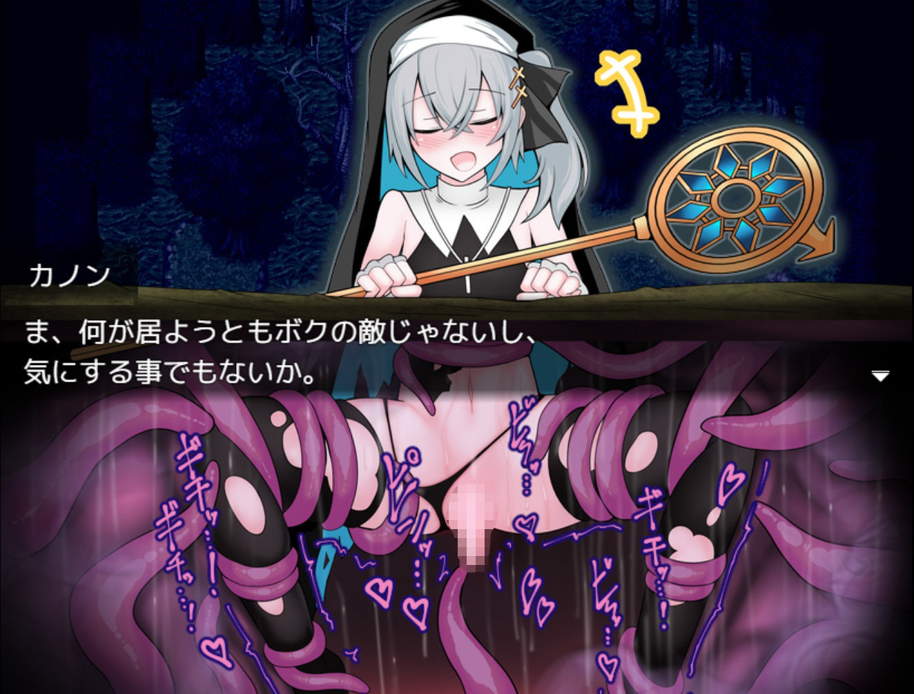 | ジャンル | ファンタジー 拘束 触手 シスター 女装・男の娘 アドベンチャー 異種姦 男性向け 成人向け メスイキ 汁/液大量 感覚遮断 粗チン |