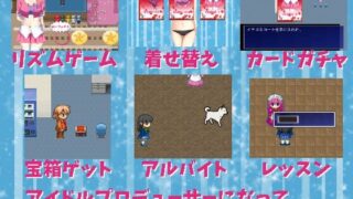 ・ストーリープロデューサーになって、アイドルを育成して、アイドルに枕営業をさせます。・内容総プレイ時間約10時間。探索ADV+リズムゲーム+ノベルゲーム。全キャラフルボイス。H対象キャラ6人。回想モード、CGモード有り。HCG12枚(差分なし)。孕ませ、強●要素あり。・対応機種WOLFRPGエディタで作成しました。windosw10/8/7で動作確認しています。まず体験版をダウンロードして動作確認することをおすすめします。動作未確認OSや低スペックPCでは、リズムゲームのリズムがずれることがありますのでご注意ください。※体験版ではストーリーを進めることができません。 製品版はミニゲームをクリアしながらストーリーを進めていきますが、 ストーリーのみを楽しむストーリーモードもあります。シナリオ&プログラム:くらげ澪絵:ひずみCV:小町ういら,思ちぽ,口谷亜夜,咲守翼,結姫うさぎ,桃色そにあ歌:妃苺